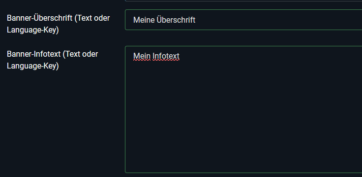 Um den Textinhalt statisch zu ändern, können Sie die Plugin-Einstellungen öffnen und den gewünschten Text in die entsprechenden Felder einsetzen.